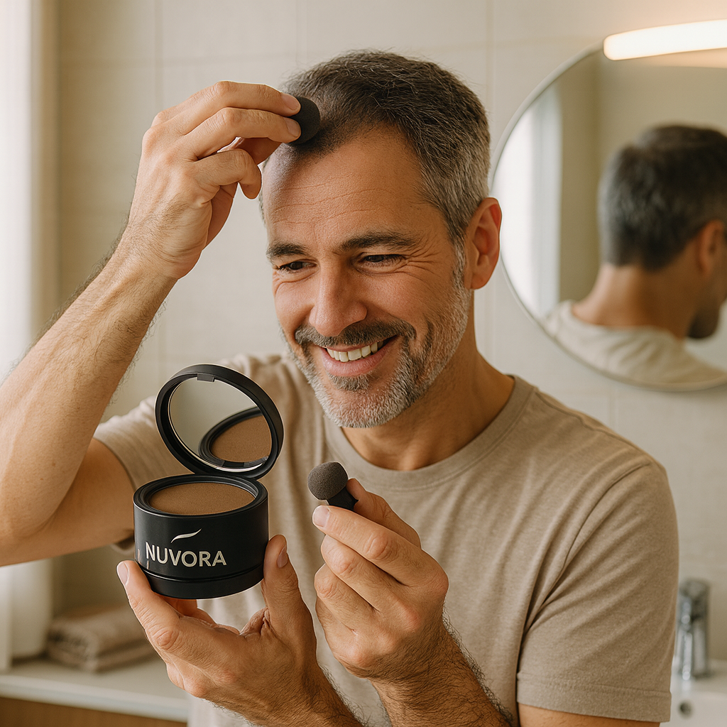Grâce à sa formule innovante, la poudre capillaire Nuvora camoufle immédiatement les zones dégarnies. Sa texture fine adhère naturellement aux cheveux, offrant un rendu indétectable qui tient toute la journée, même face à la pluie ou à la transpiration.